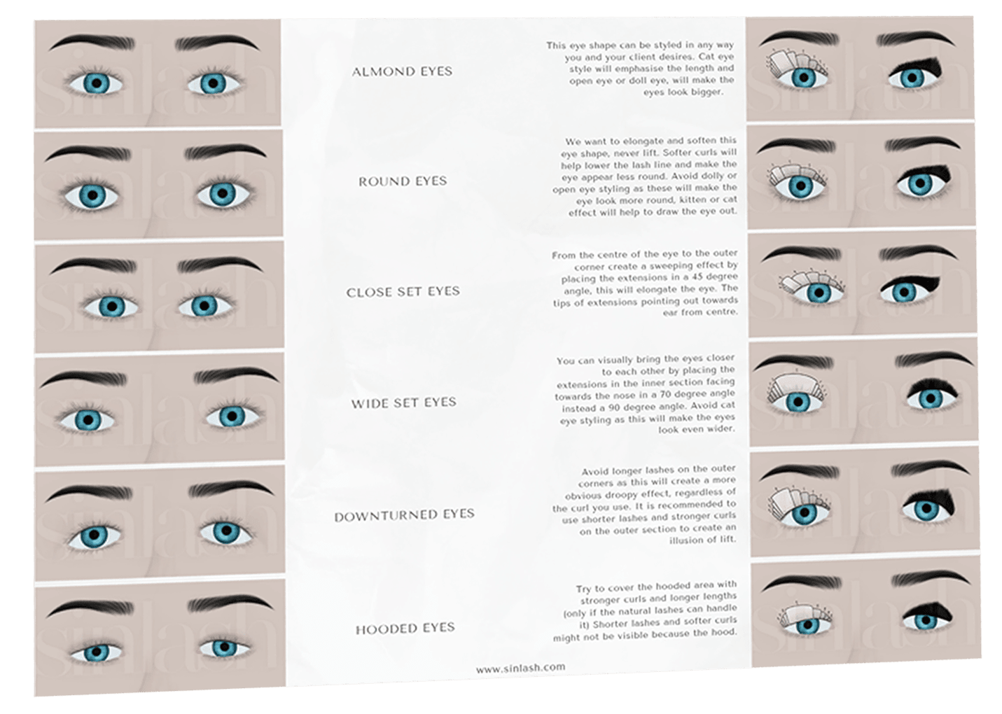 - Eye Style Guide Cheat Sheet: Learn to identify different eye shapes and which lashing style works best for each one!